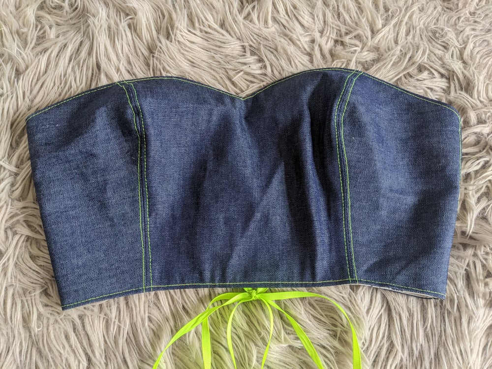 OAK Size M Up-cycled Reversible Inside-Out Denim/Sunset Plaid Bodice Top
